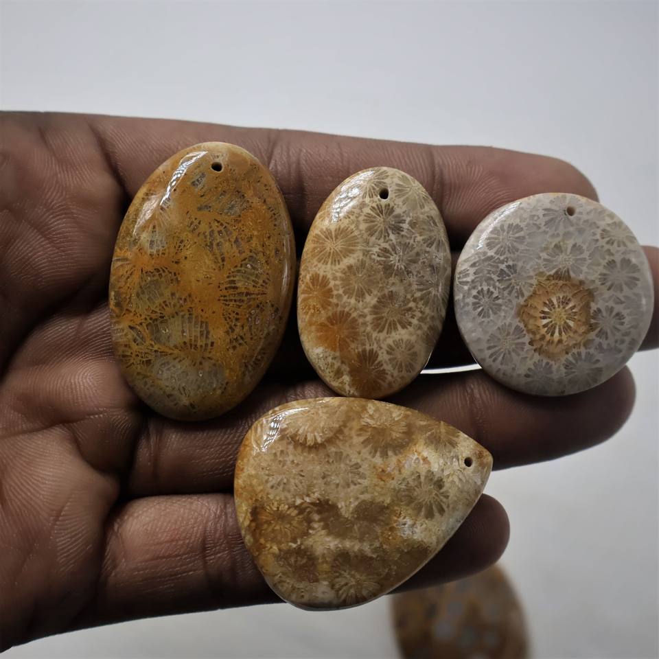 2025 High Quality Natural Oval Cut Polished Loose Cabochon Free Size Fossil Coral Gemstone Jewelry Making High-Precision Drill