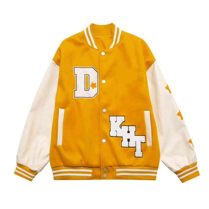 2025 High Quality Solid Yellow Color Baseball jacket For Men Custom Chenille Logo 100% Cotton Fabric College Wear Varsity Jacket