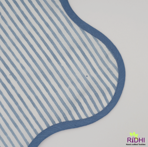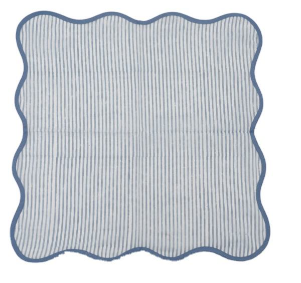2025 High Quality Square Blue Stripe Design India Block Print Napkins Ridhi Cotton Reusable Eco-friendly for Home & Hotel Use