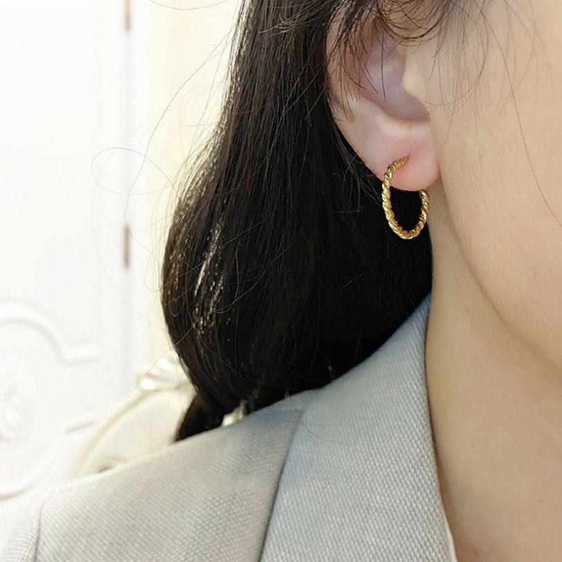 2025 High Quality Wholesale PVD Plated Trendy Stainless Steel Non Tarnish Twisted Hoop Earrings