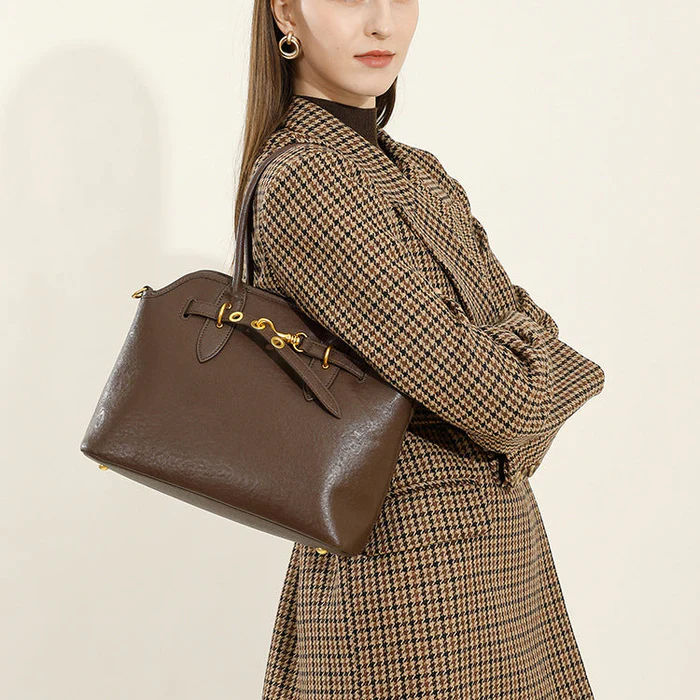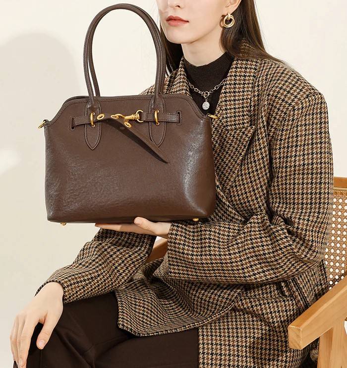 Women Fashion Solid Leather Simple Shoulder Bag
