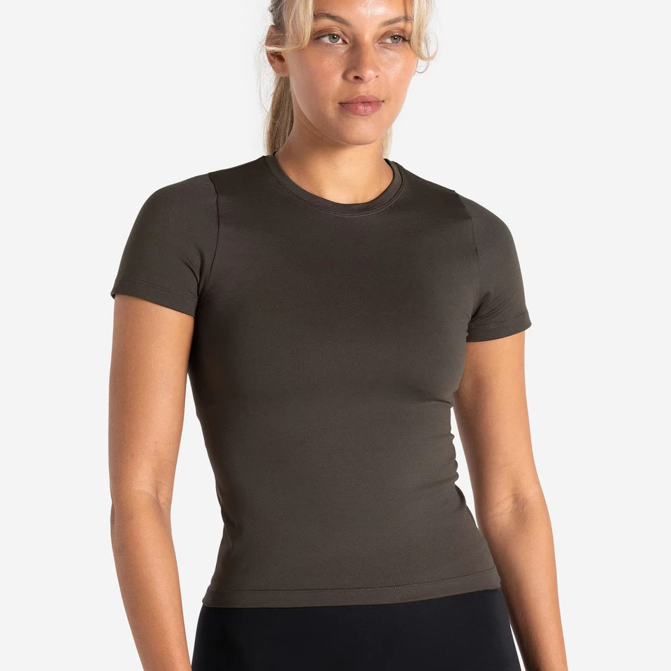 2025 High Quality Women's Casual Slim-Fitting Short Sleeved T-Shirt Single Round Neck Summer Size XL Solid Print Fabric