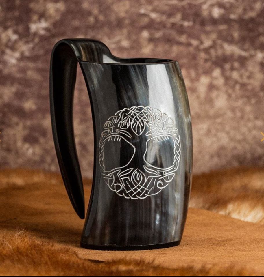 2025 High Selling Customized Buffalo Horn Tankard Natural Color Animal Style Viking Mug with Religious Engraved Logo From India
