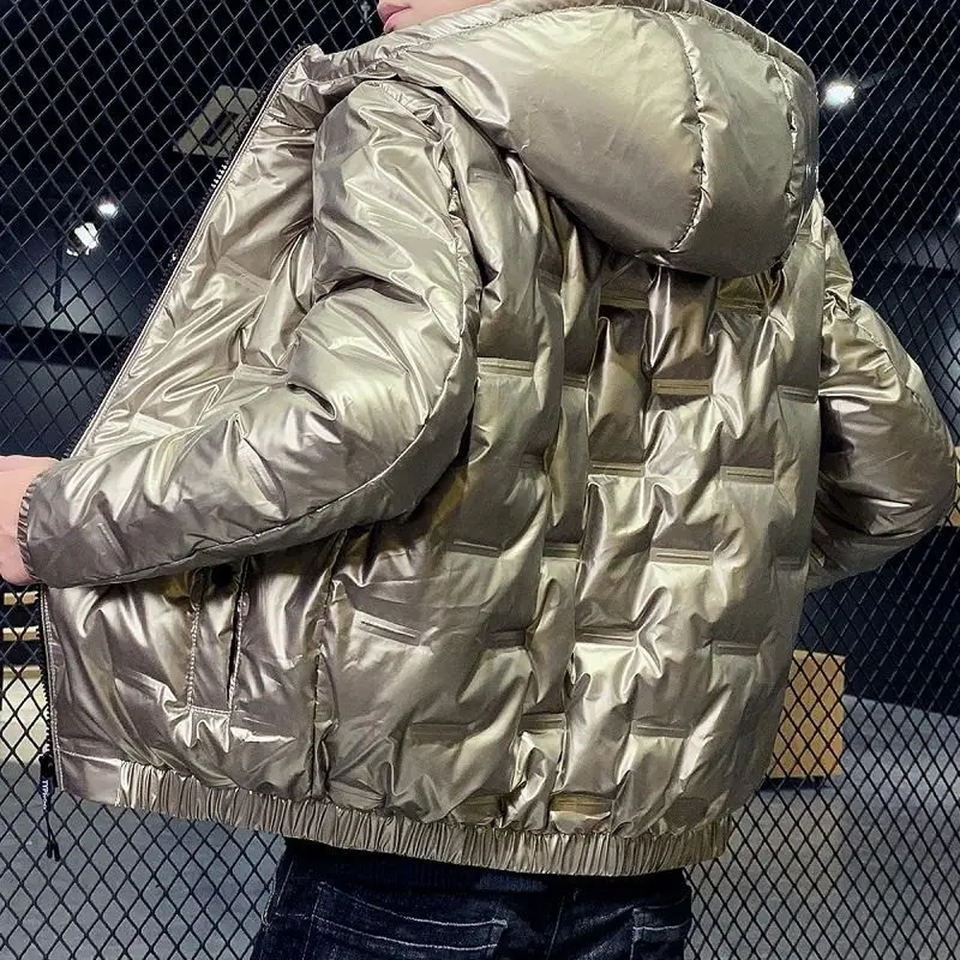2025 High Street Men's Casual Long Hooded Wool Liner Puffer Coat High Quality Shiny Winter Zipper Closure Stand Collar Cotton
