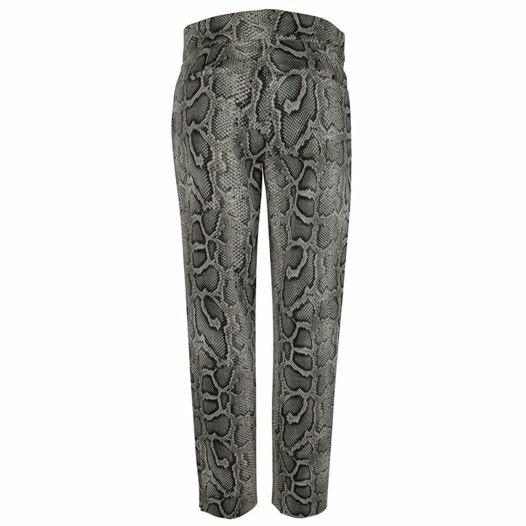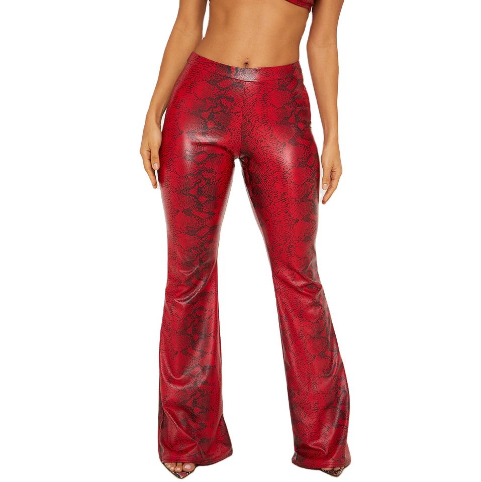 2025 High Street Women's Casual Snakeskin Leather Pants Breathable Autumn/Winter Fashion with Front Flat Style Logo on Waist