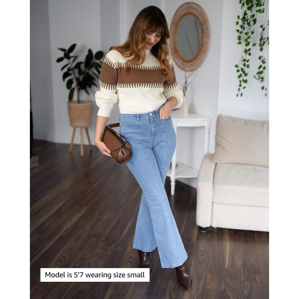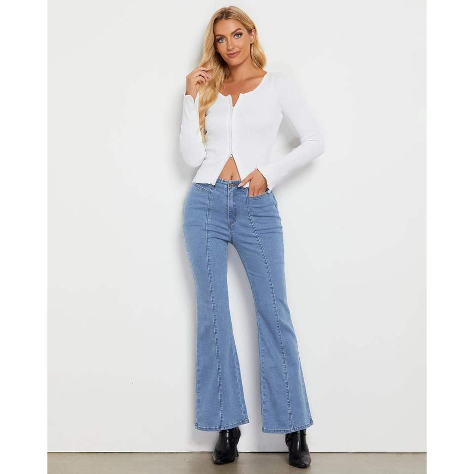 2025 High Waisted Wide Leg Flare Jeans for Women Trendy Seamed Front Stretchy Denim Pants Pockets Breathable Trouser Jean