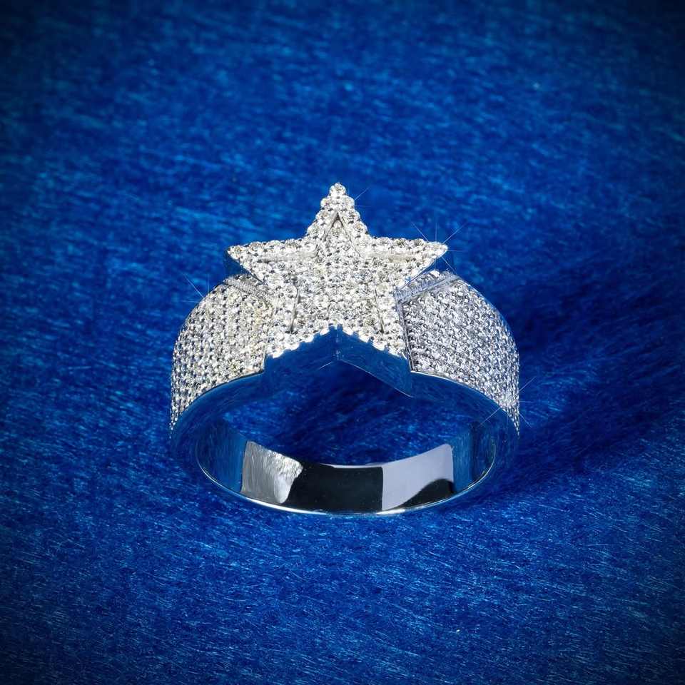 2025 Hip Hop Fine Jewelry Passd Diamond Tester 925 Sterling Silver Iced Out VVS Moissanite Cluster Star Ring for Men Women