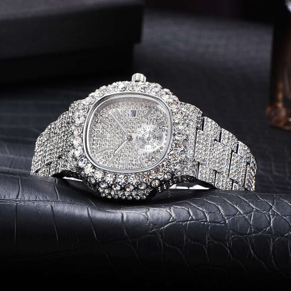 2025 Hiphop Luxury 3BAR Water Resistant Sapphire Crystal Watch Men Quartz Gold Steel Case Leather Band 22mm Automatic Moon Phase