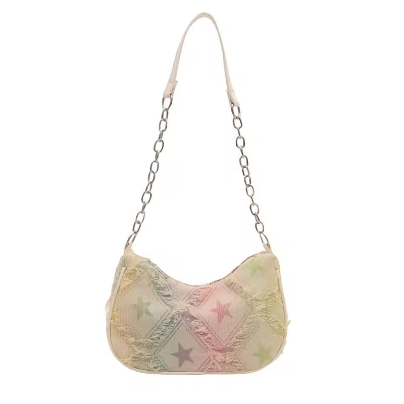 2025 Hot Sale French denim checkerboard messenger bag women's shoulder bag underarm bag