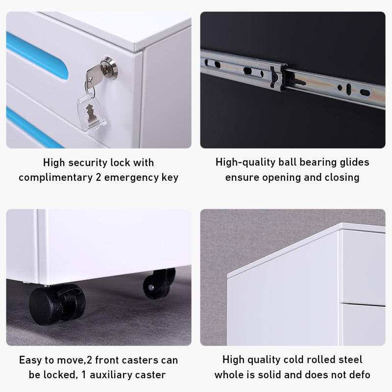 Product name:Metal Mobile File Cabinet Three Drawers Filing Cabinet Under Desk