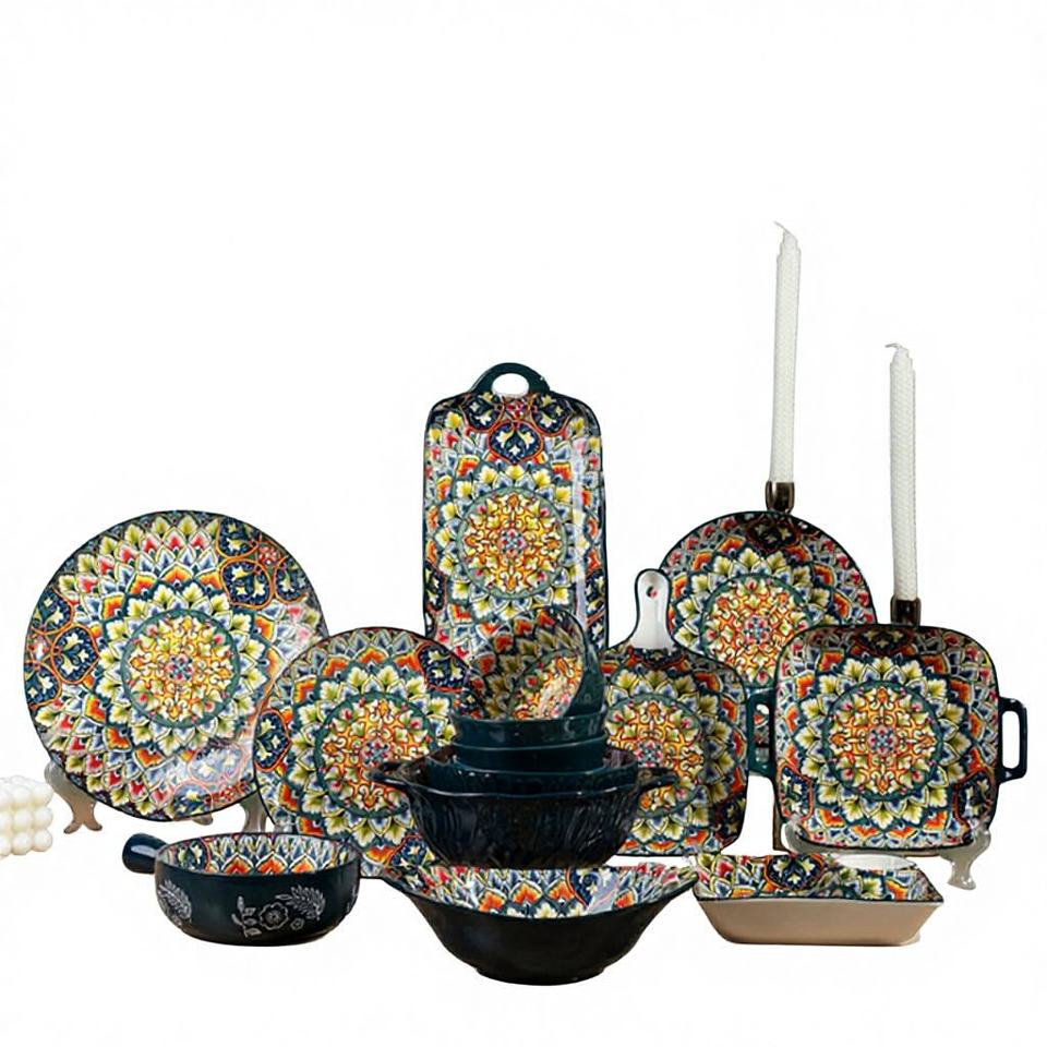 2025 Hot Selling LOMATO Bohemian Style Square Ceramic Dinnerware Sets Creativity High Color European Pattern Microwave Setting