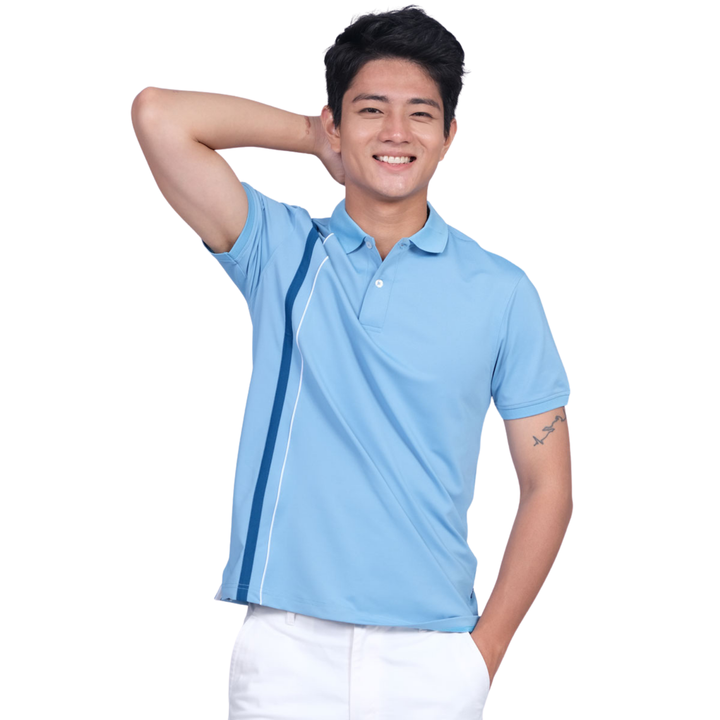 Product Name:Polo Shirt with Contrast Corded Piping Lines Down Front