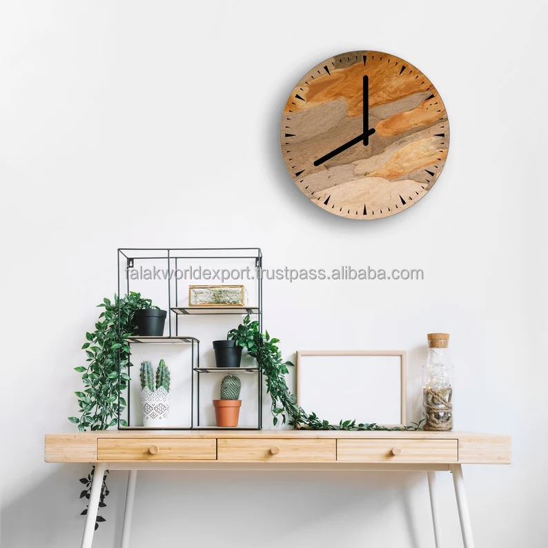 Home Decor Custom Solid Wood Clock Hanging Decorative Clock for Wall Modern Round Shape Wooden Clock By Falak World Export