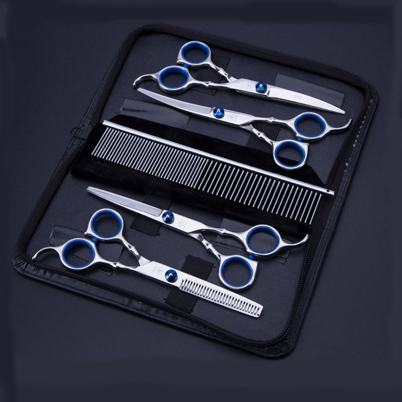 2025 Hot Selling Customized Assorted Colours 5 Pieces Scissors Pet Dog Grooming Scissors Set with Sharpener