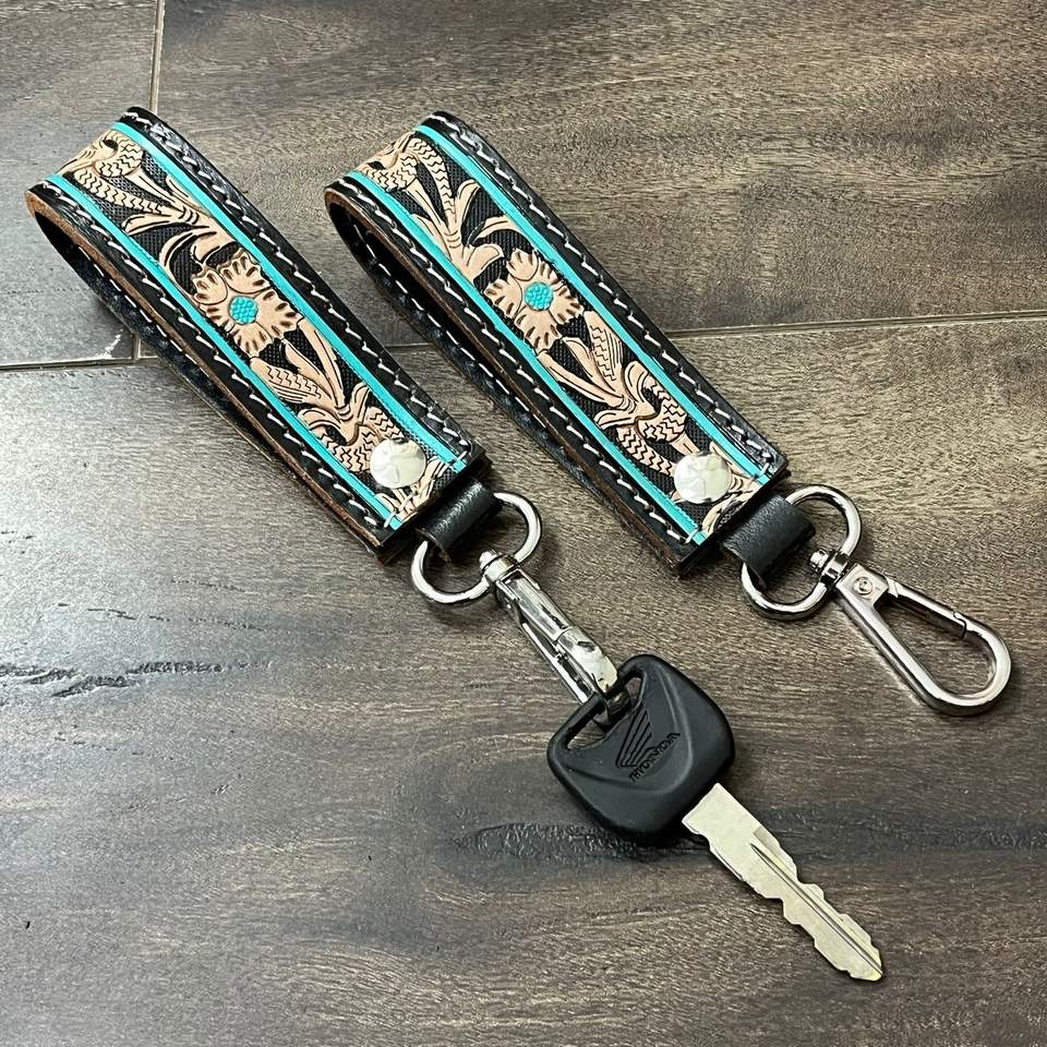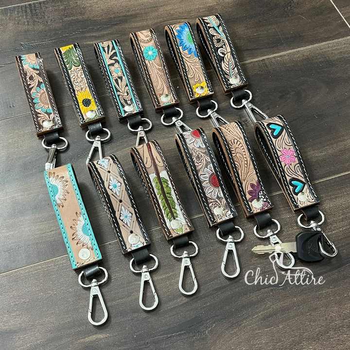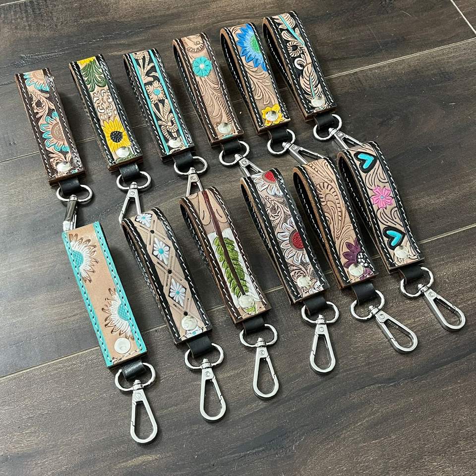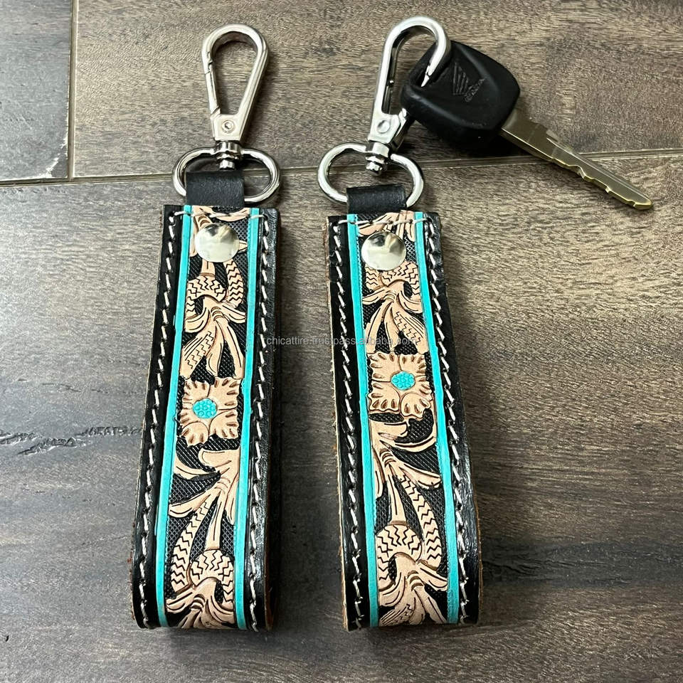 2025 Hot Selling Hand Tooled Leather Wristlet Key Chains Stylish Real Cow Leather Metal Key Fob Custom Cute Key Clip for Women's