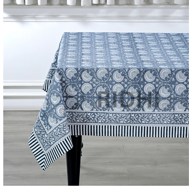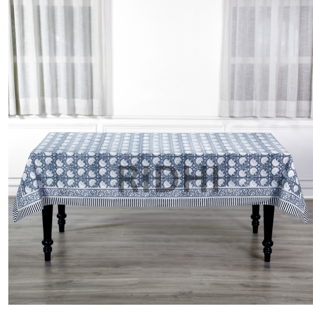 2025 Hot Selling Handmade Indian Block Printed Cotton Tablecloth Dusty Indigo Floral Design for Table Top Cover