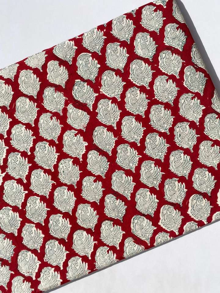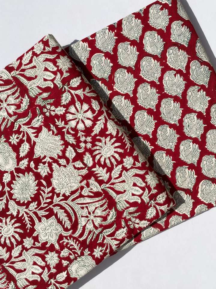 2025 Hot Selling Indian Floral Hand Block Printed 100% Pure Cotton Cloth Fabric by the Yard Dresses Pillows Cushions