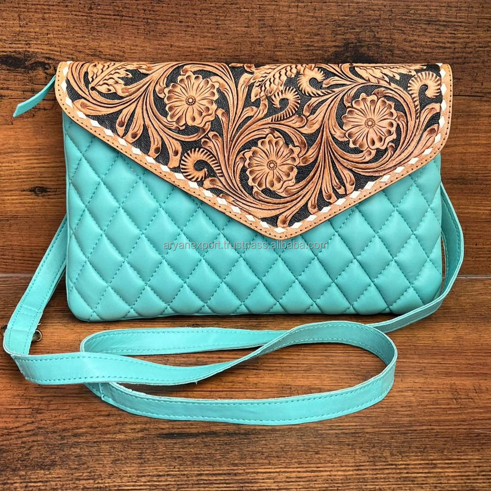 Product Name:Hand Tooled Quilted Envelope Crossbody Bag