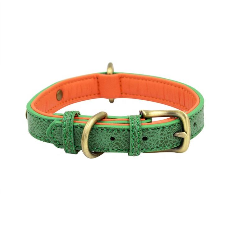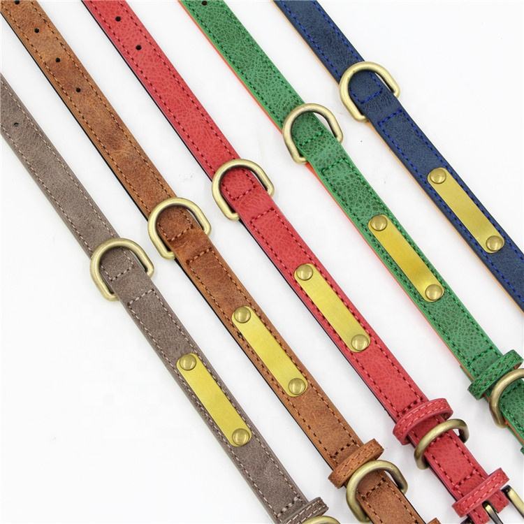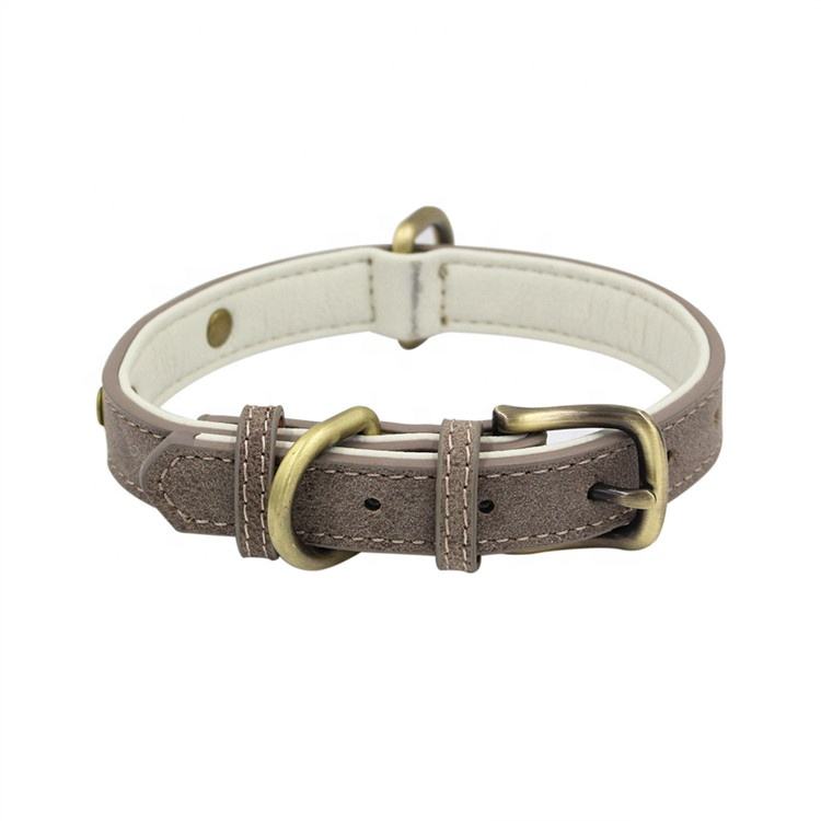 2025 Hot Selling Lychee Pattern Microfiber Brushed Bronze Plated Stainless Steel Pet Collar