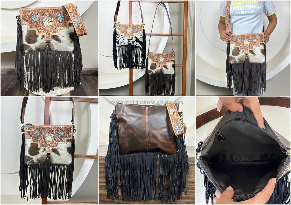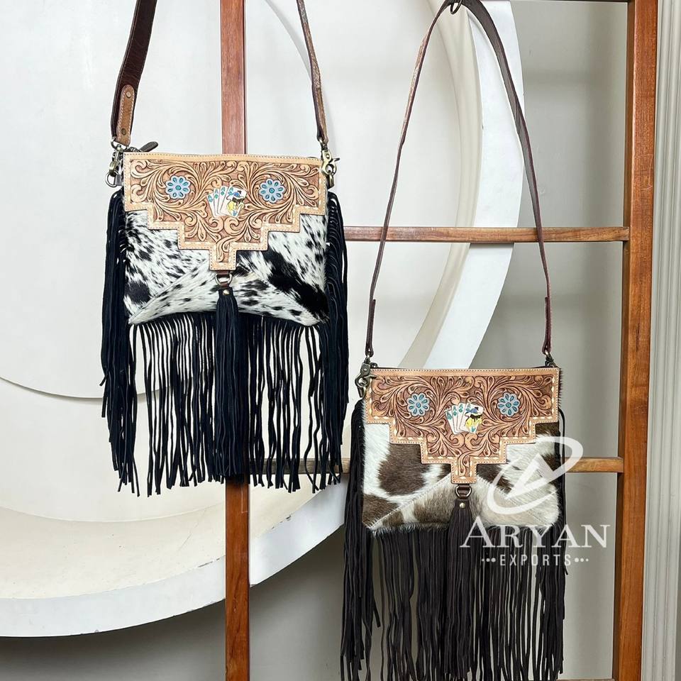Product name:Hand Tooled Cowhide Leather Fringe Shoulder Bag