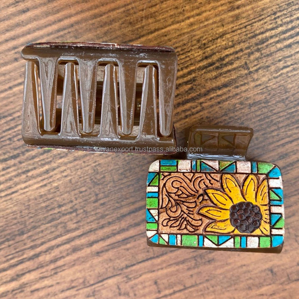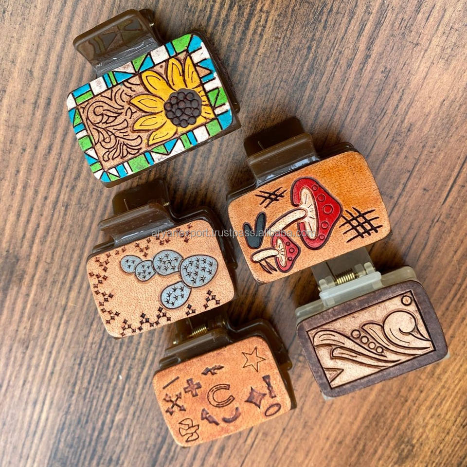 Product name:Tooled Engraved Leather Mini Hair Claw Clips