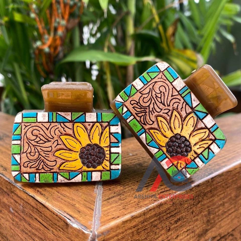 Product name:Hand Tooled Engraved Leather Mini Hair Claw Clips