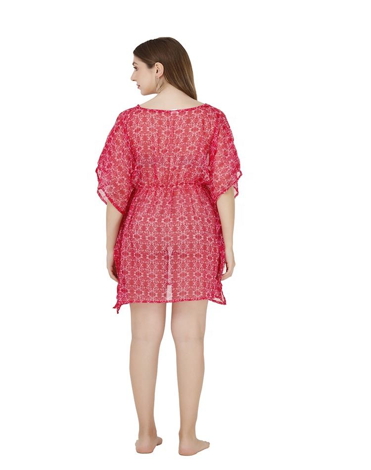 2025 Hot Styles Floral Printed V-Neckline Bikini Cover Dress 100% Poly Chiffon Caftan Sun Protection Drawstring Animal Plus Size