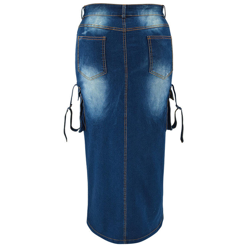 2025 Hot Trending Women's Casual Pleated Maxi Skirt Solid Color Denim Jeans Y2K Style Straight Summer Autumn Waist