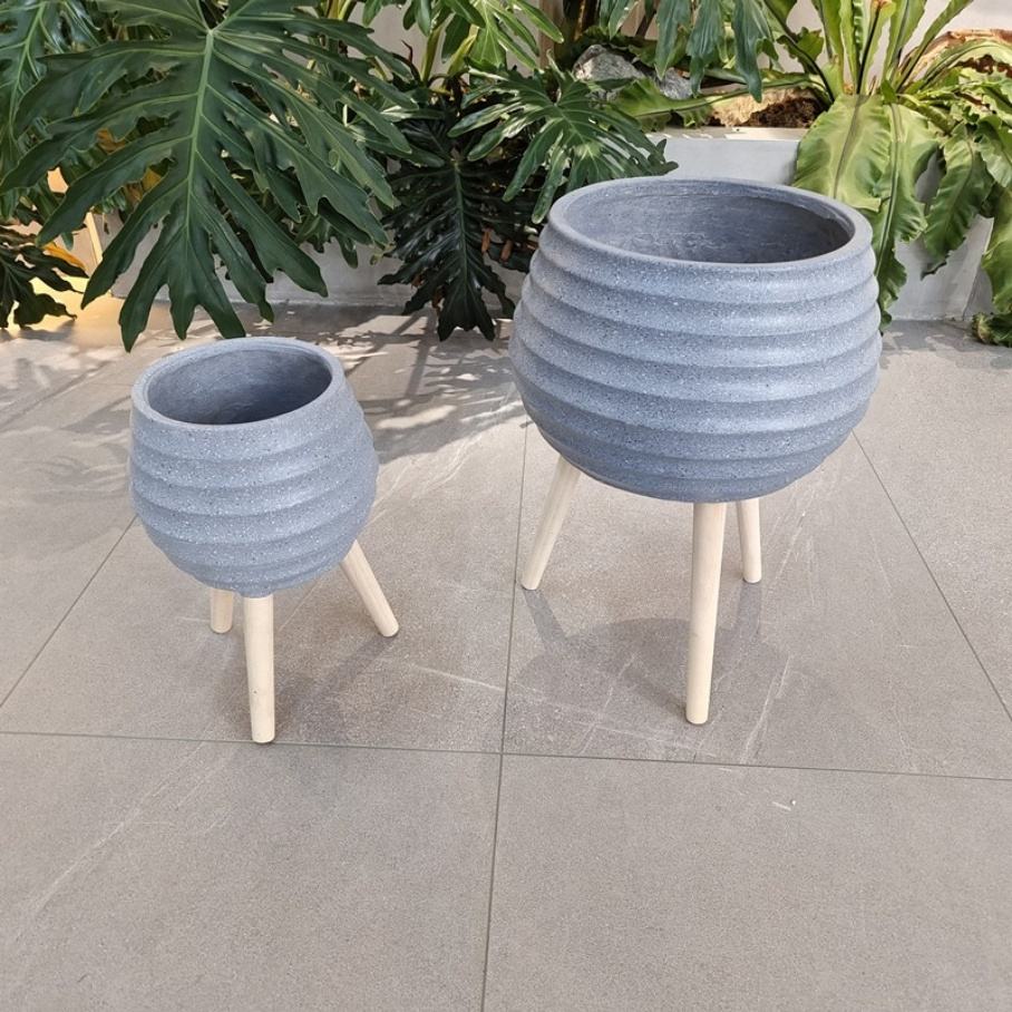 2025 Indoor Gray Modern Style Fiber Clay Flower Pots Drainage Hole Eco-Friendly Lightweight Home Yard Artificial Plants Decor