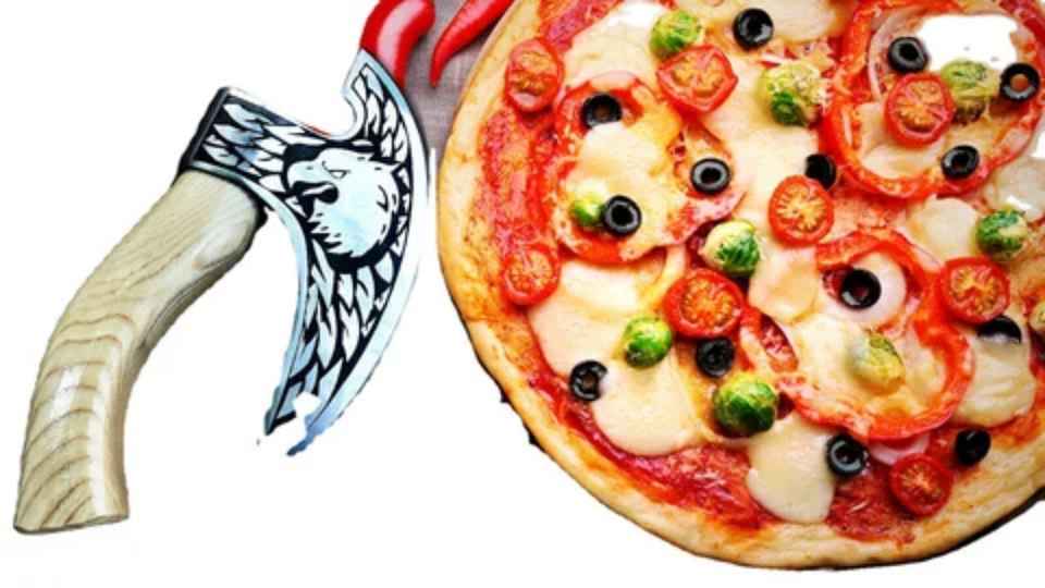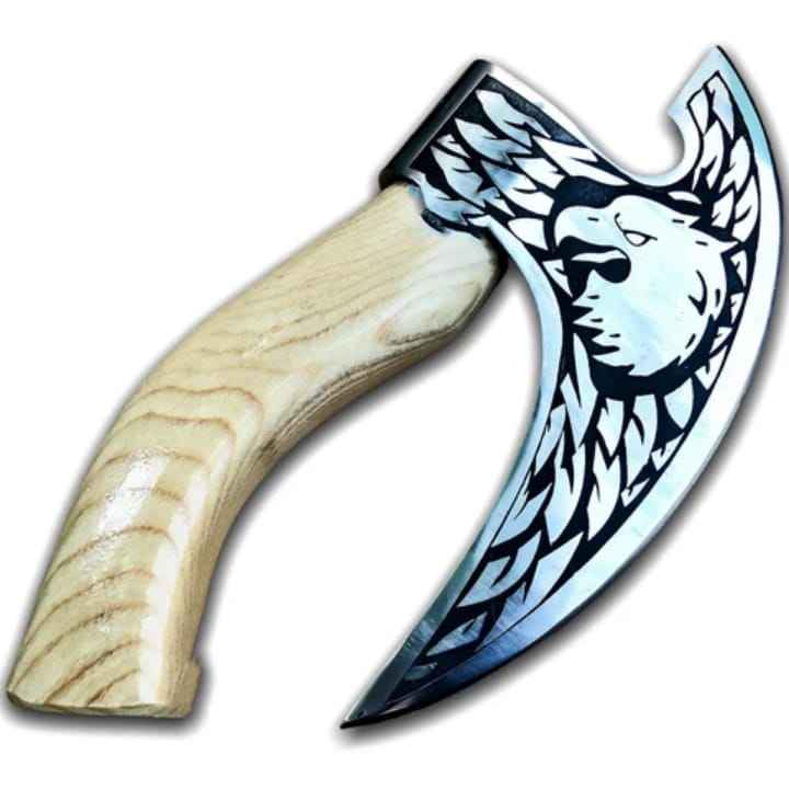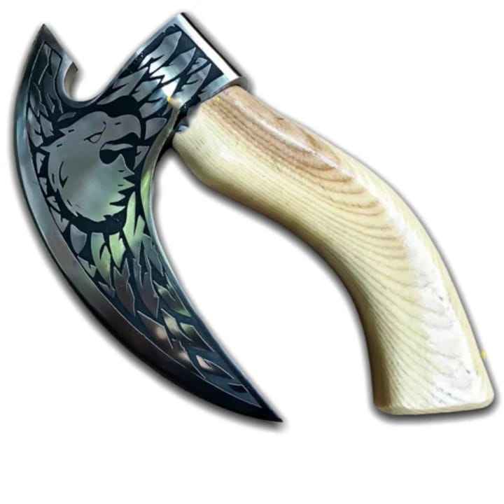 2025 Industrial Grade Handmade Steel Pizza Cutter Axe Unique Viking Bearded Design High Quality Wood Leather Sheath Gift Item