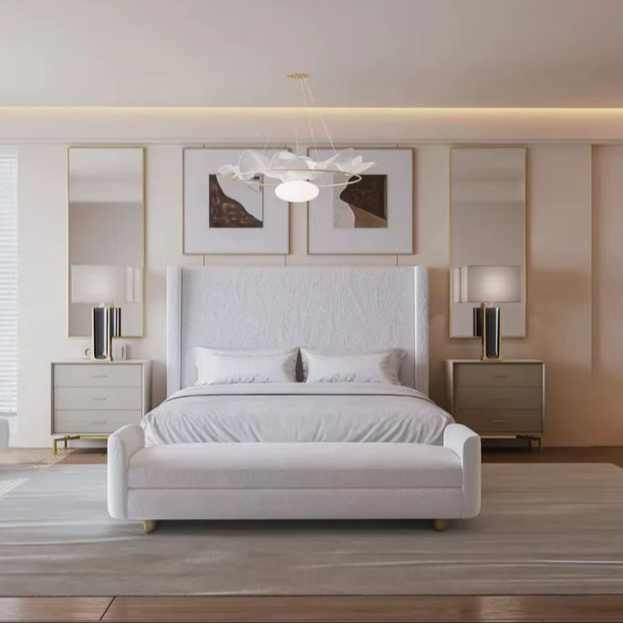 2025 Italian Style Modern Luxury Wooden Frame Velvet Queen King Size Bedroom Set