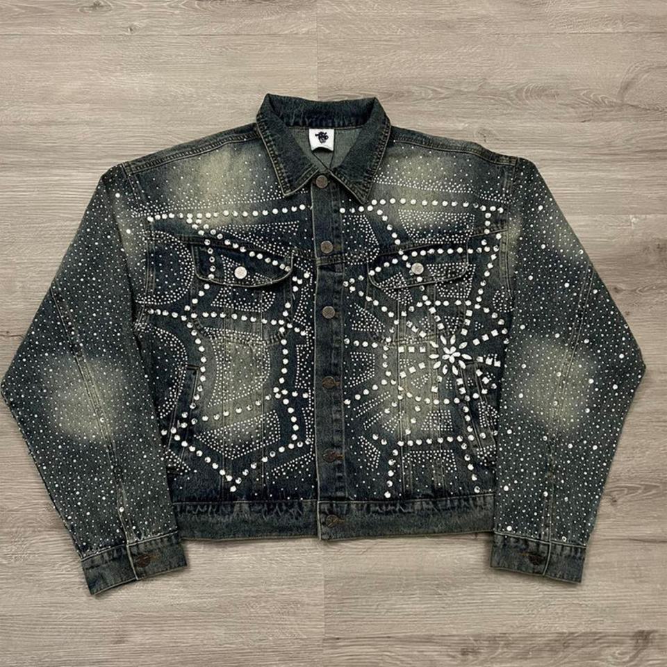 2025 Jacket Manufacturer Direct Sales Customized Men's Denim Jacket with High-end Button Decoration and Brick Inlay Design