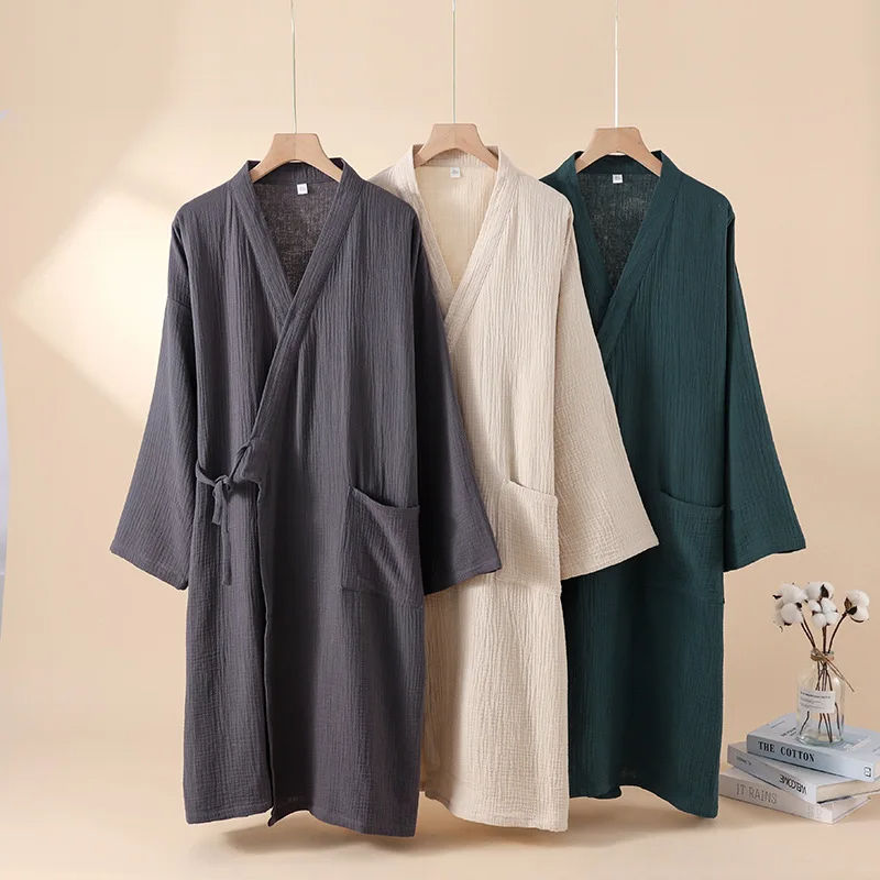 2025 Japanese-Style Kimono New 100% Cotton Crepe Ladies Nightgown Men's Bathrobe Home Service Pajamas Spring Summer Collection