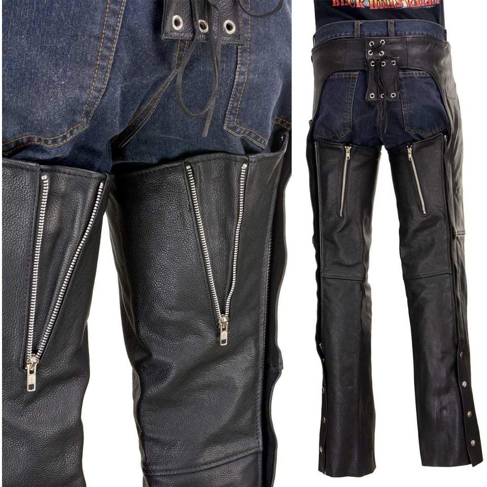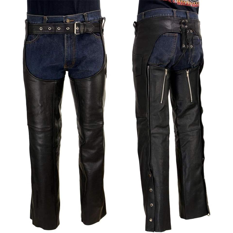 2025 LKM5721 Men's Premium Leather Motorcycle Biker Rider Chaps Black Easy Fit-50 Inches Auto Racing Wear