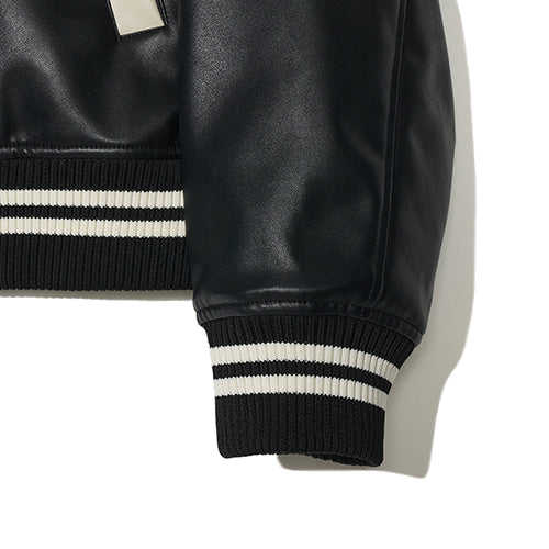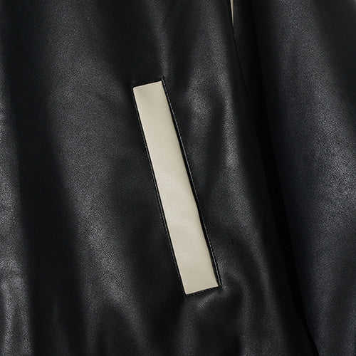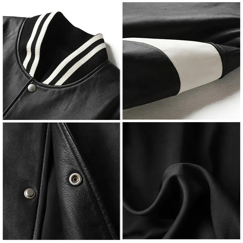 2025 Lady's Real Sheepskin Leather Bomber Jacket Fashion Streetwear Short Varsity Jacket Stand Black White Leather Inserts