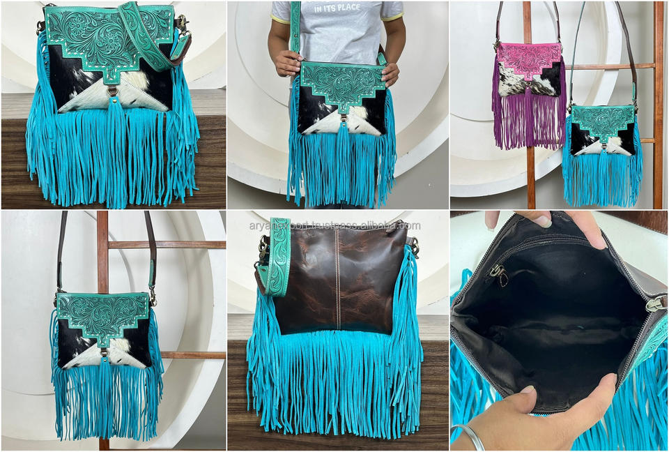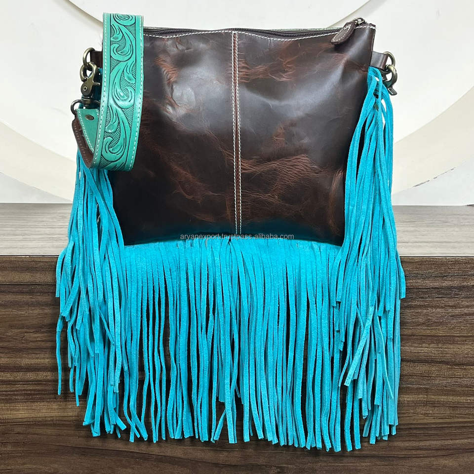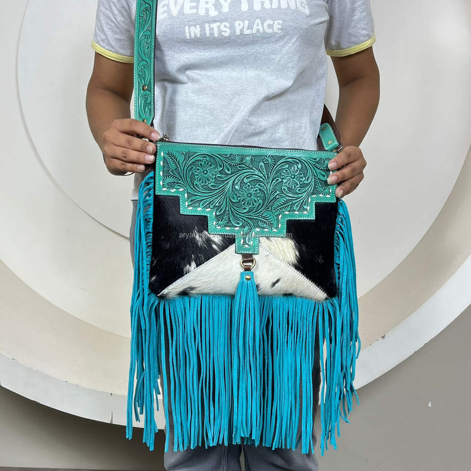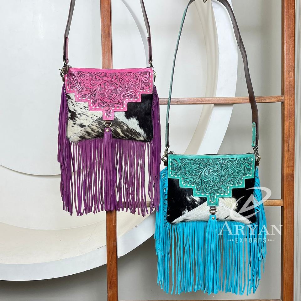 Product name:Hand Tooled Cowhide Leather Fringe Crossbody Bag