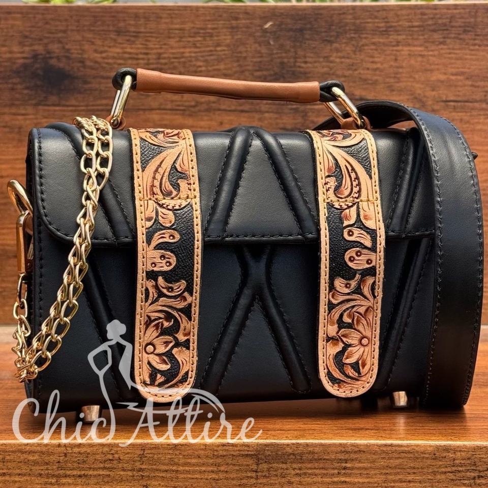 Product name:Designer Hand Tooled Quilted Crossbody Flap Bag