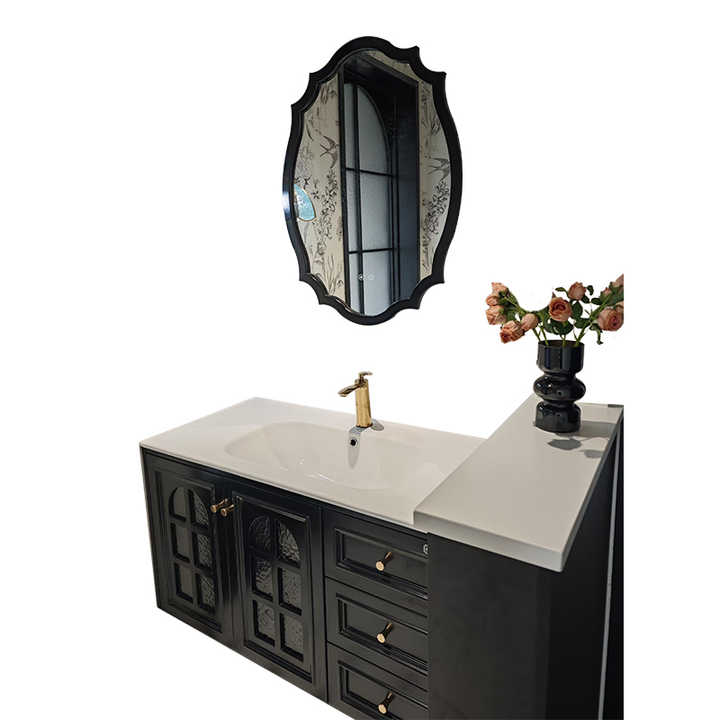 Luxurious European Style Bathroom Cabinet 2 Drawers Water-Resistant Featuring Bath Mirror Ceramic Basin Mirror Cabinet Accessory