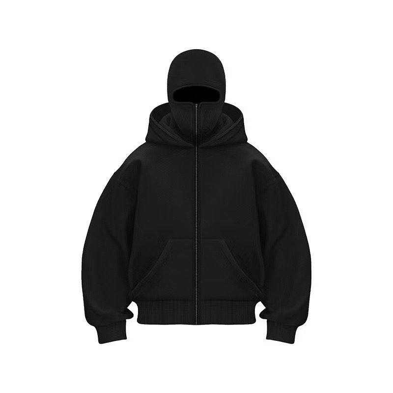 2025 Latest Custom Logo Zip up Balaclava Hoodie High Quality Men's Streetwear Hooded Outdoor Winter