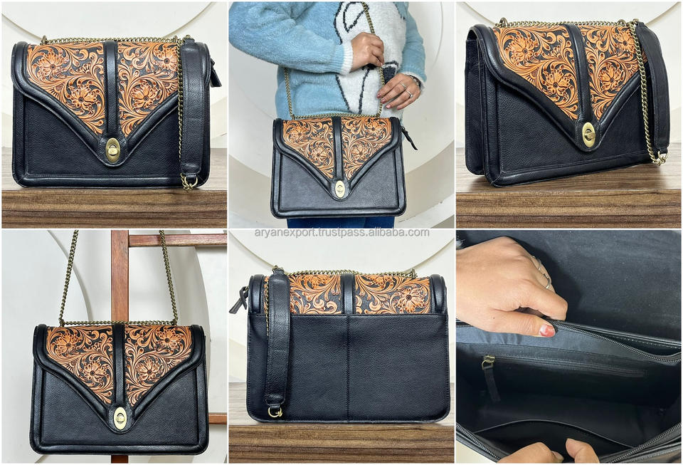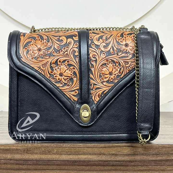 Product Name:Hand Tooled Cowhide Leather Handbag