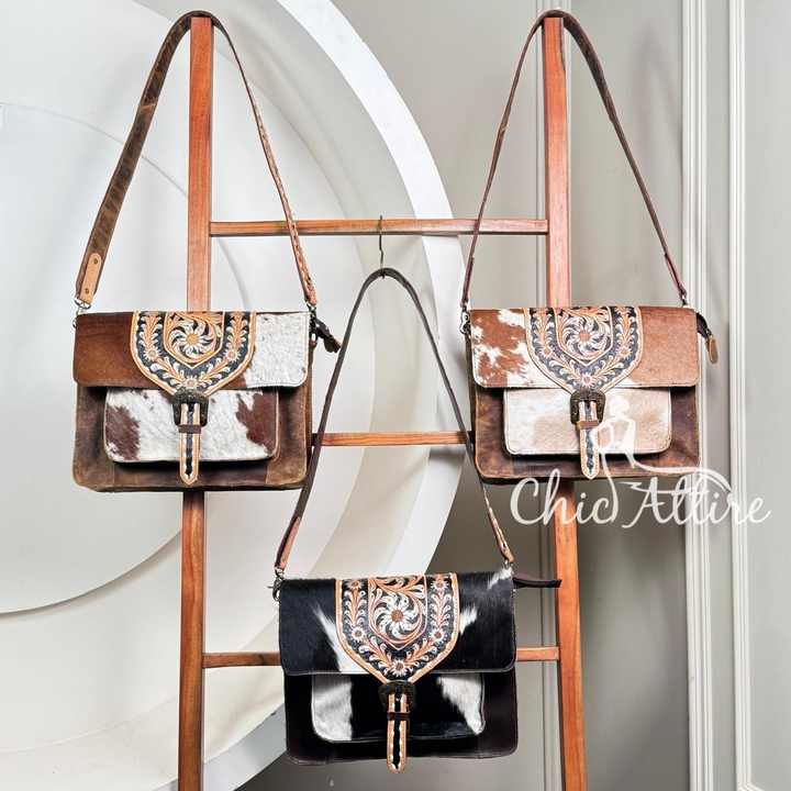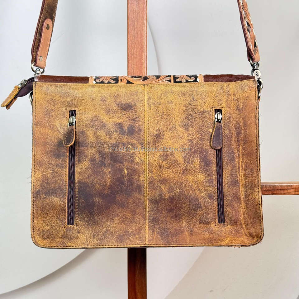 Product name:Hair On Tooled Leather Laptop Holder Purse