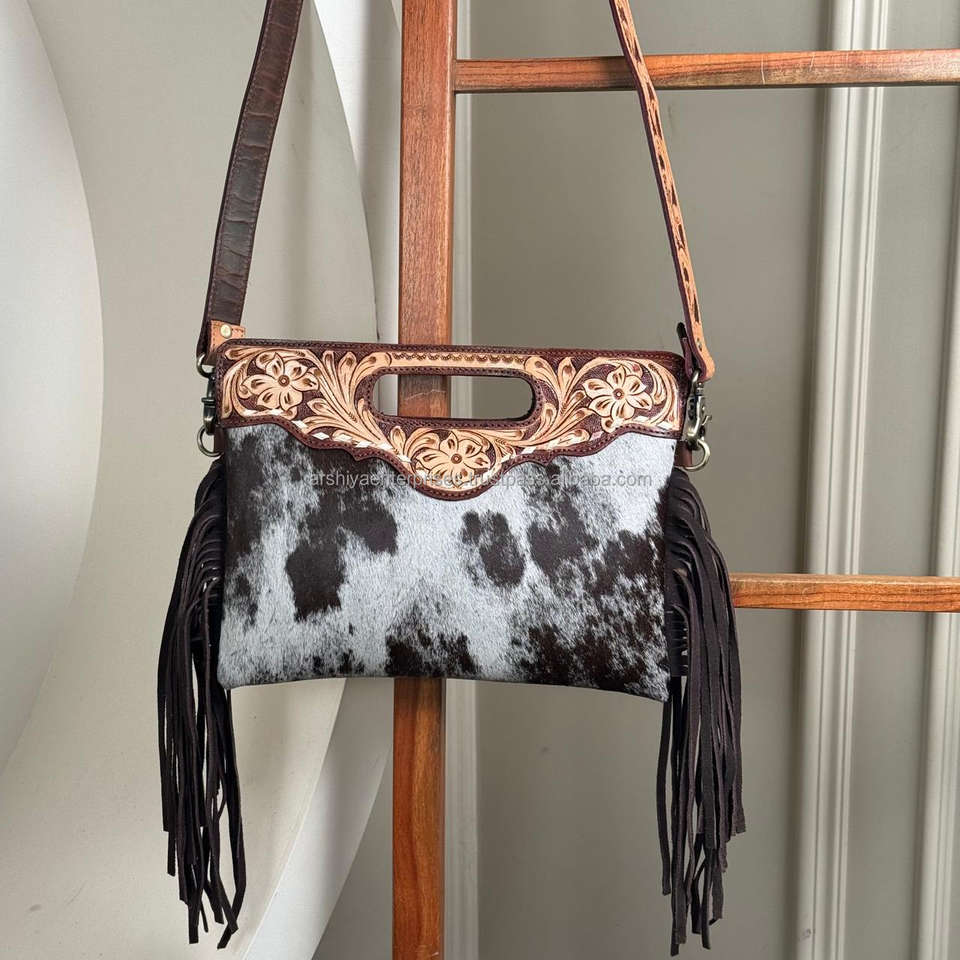 Product name:Hand Tooled Cowhide Leather Fringe Crossbody Bag