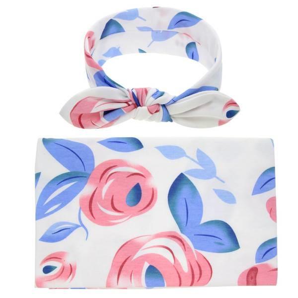 2025 Latest Super Soft Comfortable New Blanket Headband Set Leaf Flower Printed Cotton Muslin Jersey Baby Swaddle Kids' Bedding