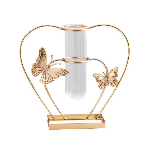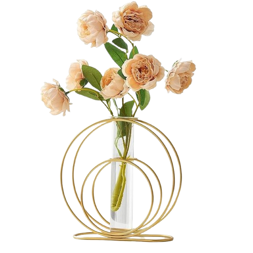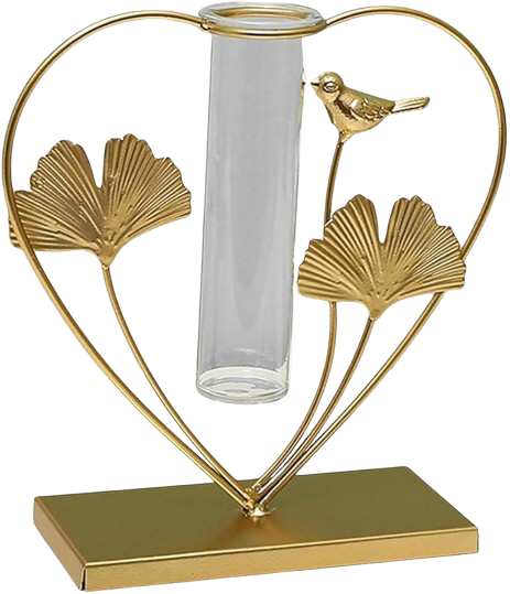2025 Leaf Design Hydroponic Glass Tube Flower Vase Wedding Decoration with Metal Stand Wholesale Price Luxury Iron Vase Plant