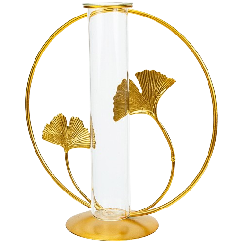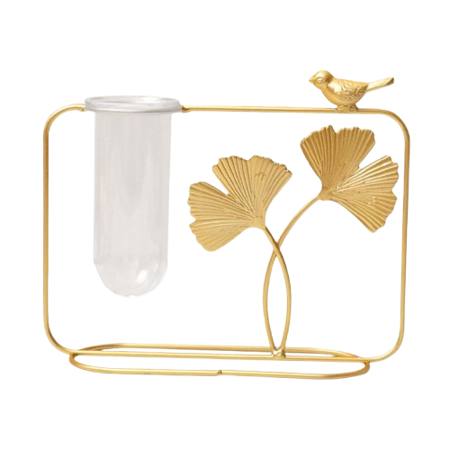 2025 Leaf Design Hydroponic Glass Tube Flower Vase Wedding Decoration with Metal Stand Wholesale Price Luxury Iron Vase Plant