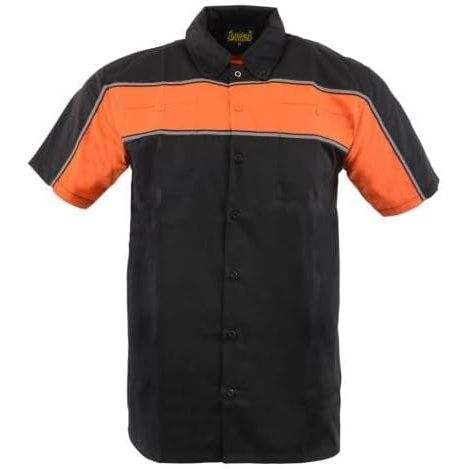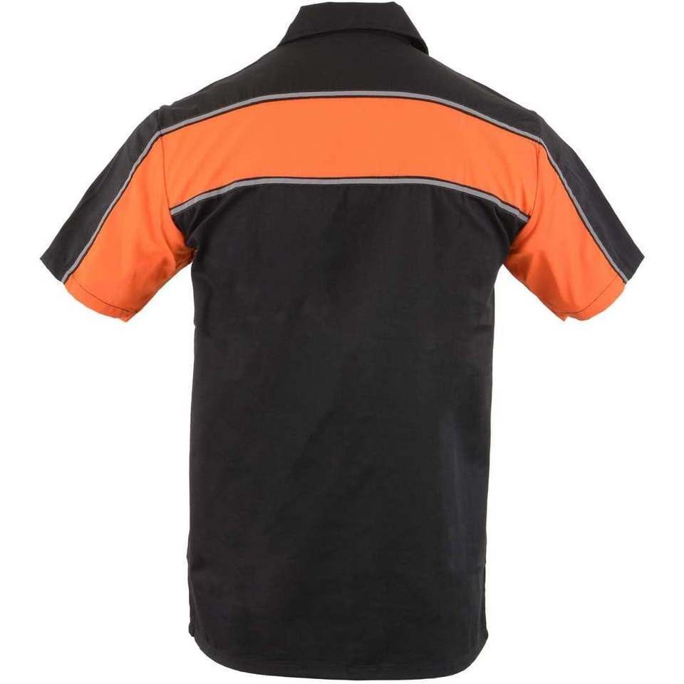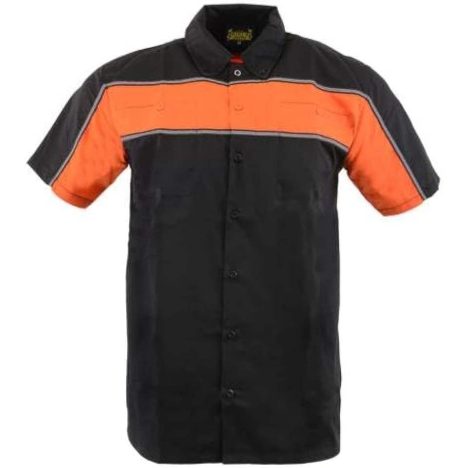 2025 Leather MDM11673 Men's Classic Mechanic Work Shirt Black and Orange Button up Heavy-Duty for Workwear