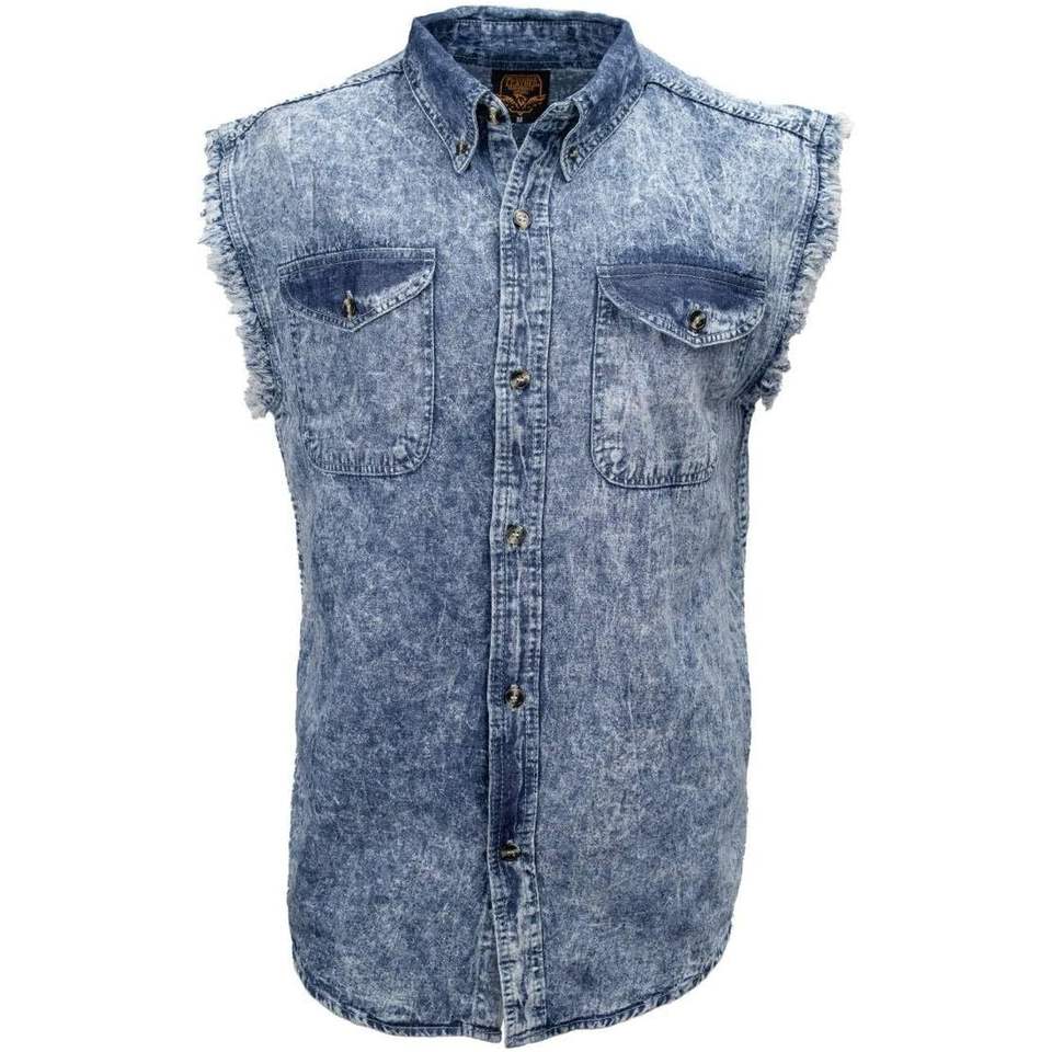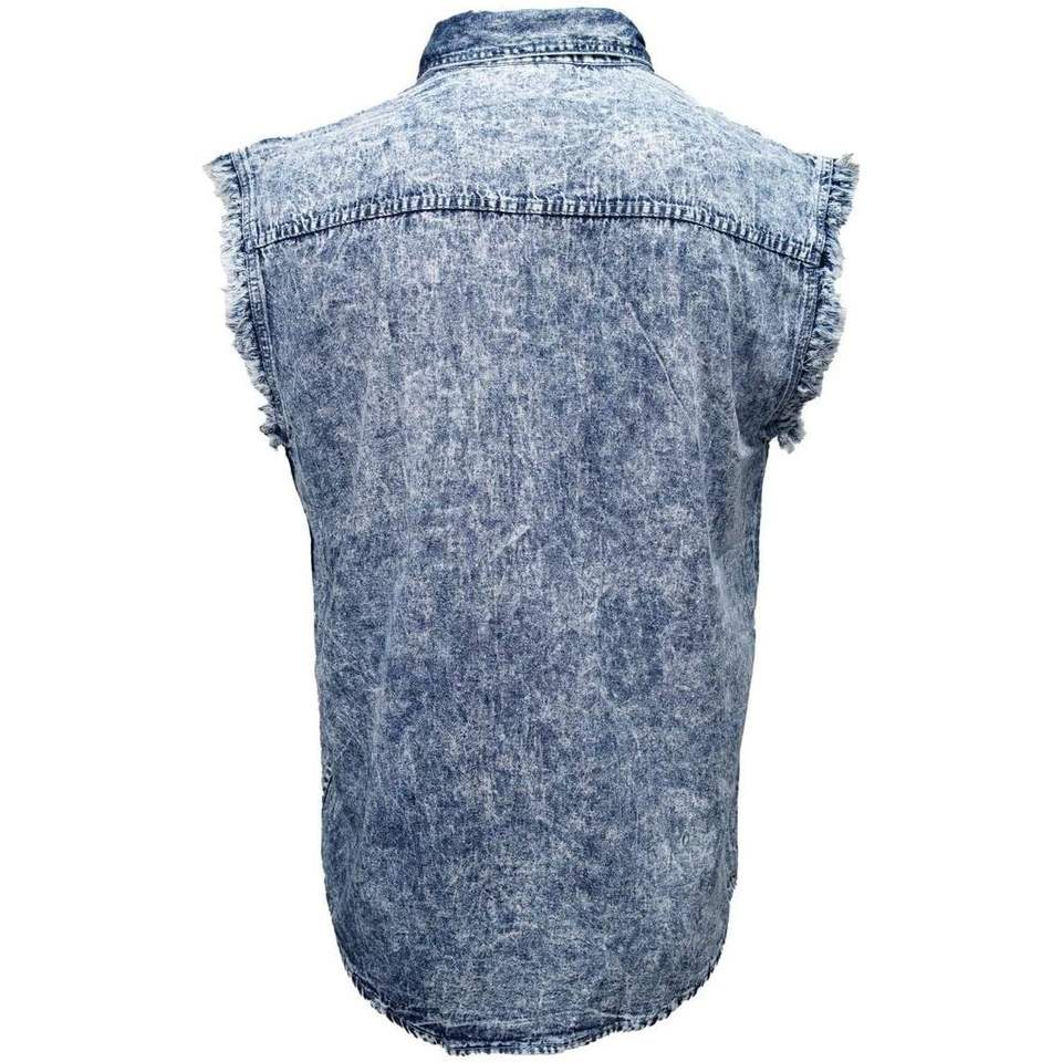 2025 Leather MDM11684 Men's Classic Light Blue Button-Down Cut-Off Sleeveless Casual Denim Shirt