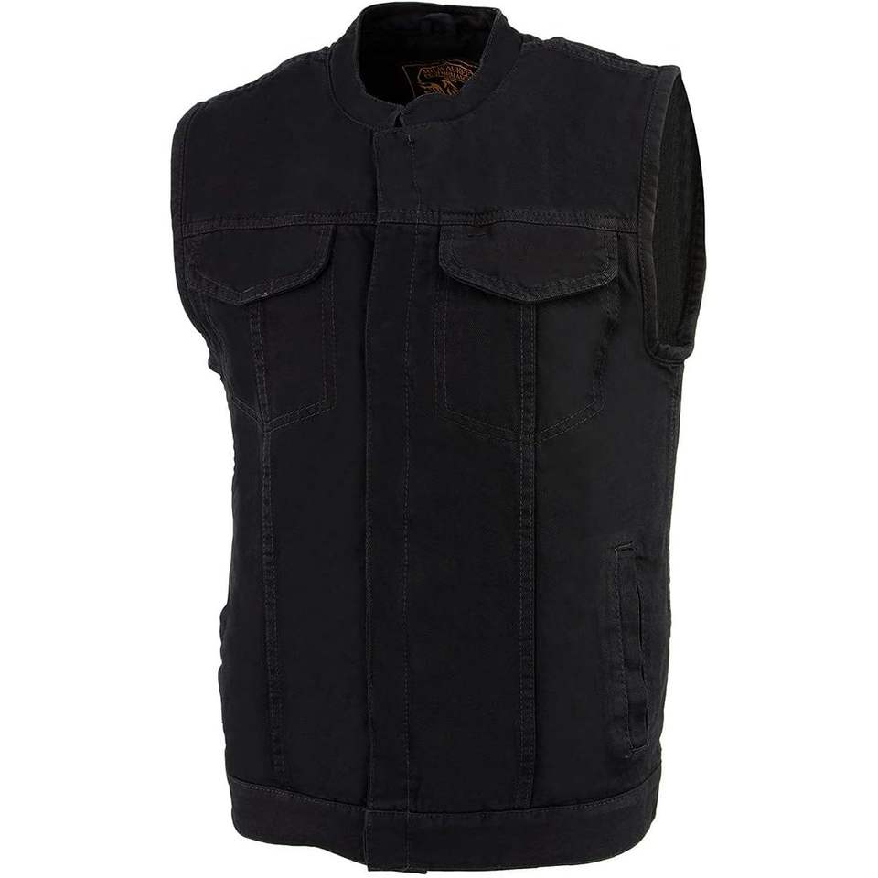 2025 Leather MDM3000 Men's 'Brute' Vest Concealed Snap Black Denim Club Style with Hidden Zipper