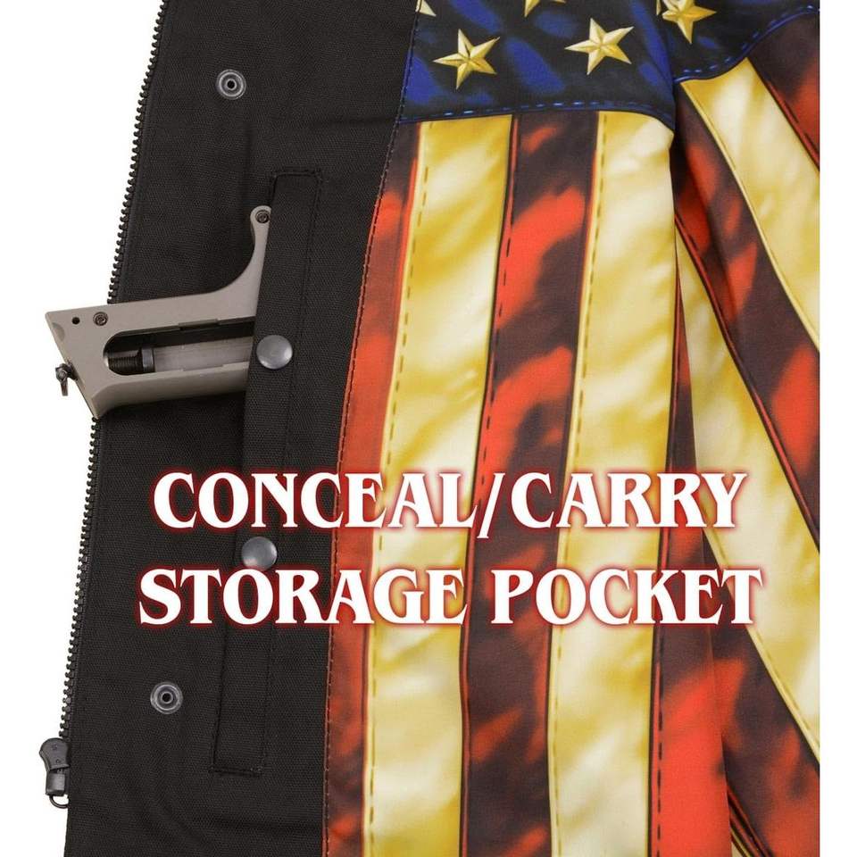 2025 Leather MDM3007 Men's 'Brute' Vest Concealed Snap Black Denim Club Style with USA Flag Liner