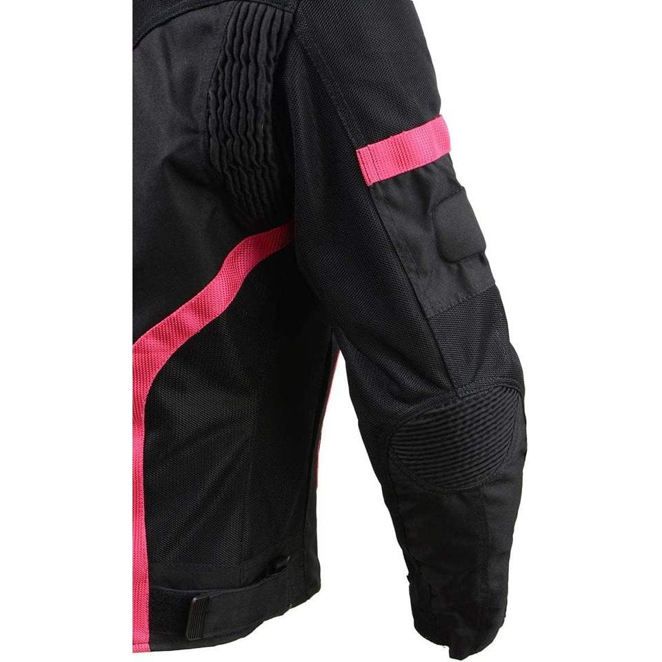 2025 Leather MPL2794 Black and Pink Mesh/Textile Armored Women's Motorcycle Racer Jacket All Season Auto Racing Wear